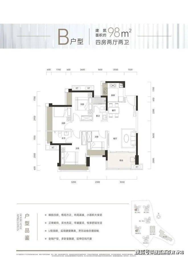 98㎡的4房2厅2卫,折后总价约265万/套,折后单价约2.7万/㎡。