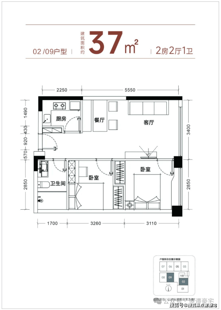 【产品面积】约37㎡小两房(实际套内使用面积接近54㎡)