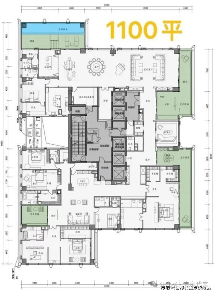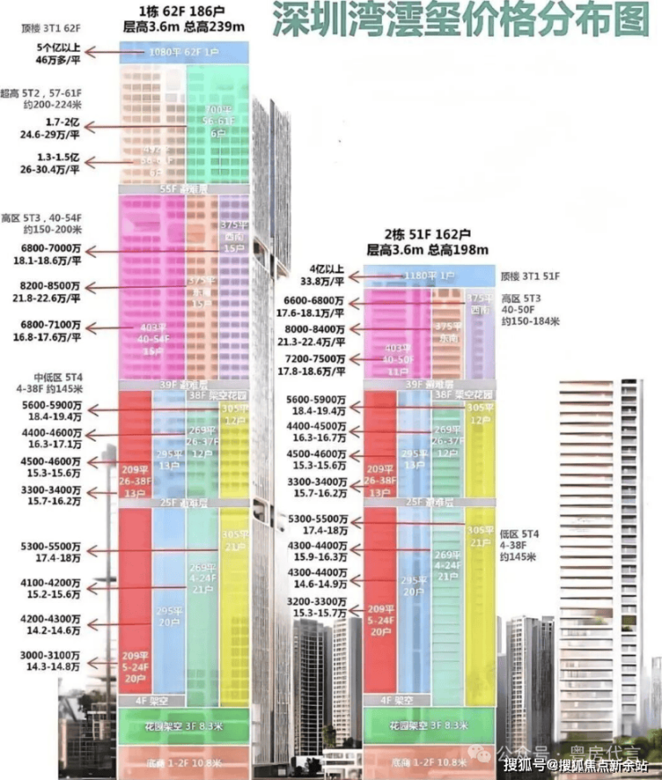 户型设计:户型面积跨度约209-1150㎡,涵盖四房、五房及复式户型。主力户型采用“框架核心筒+无次梁厚板”结构,空间灵活可变,层高约3.6米,配备大面宽阳台,部分户型可享270°海景或城市天际线景观。