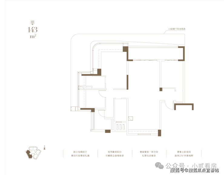 建面143㎡户型,奢阔餐客一体空间,宽界瞰景阳台,尽藏都会森境绿景。
