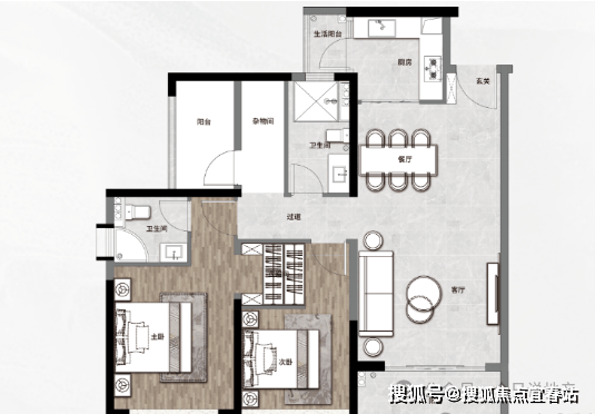 125㎡四房两厅两卫,正南北横厅户型,双阳台南北对流,超6m超宽景观阳台,享大夫山湖头排景观;
