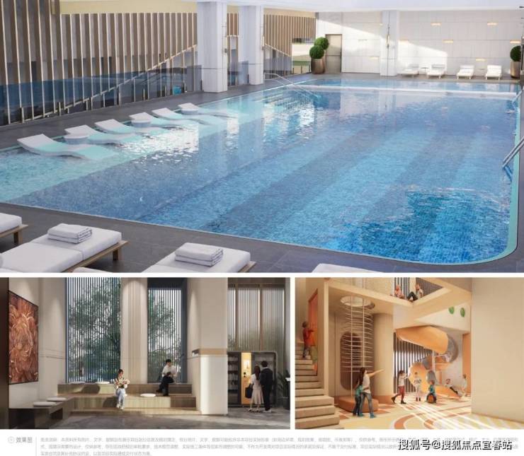 立体泛会所体系,分层规划全龄生活场景,涵盖四点半课堂、健身瑜伽、室内泳池、休闲会客与益智游乐等。