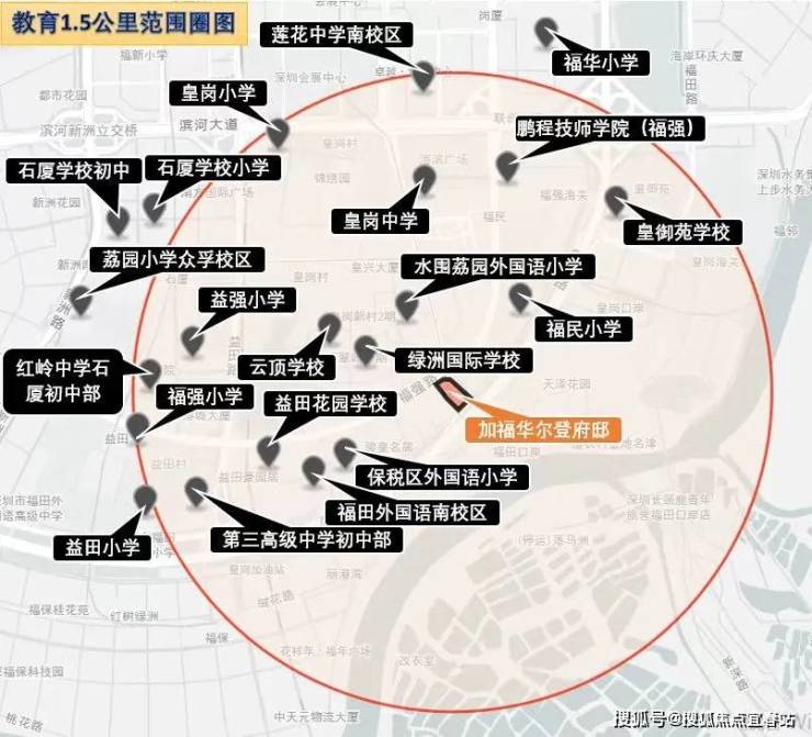 教育方面:项目周边教育资源非常丰富,据不完全统计项目1.5公里范围内学校不少于17所,其中像福田保税区外国语学校、福田外国语学校南校区、荔园外国语小学水围小学这种知名度和口碑度较高的学校距离项目也都非常近。