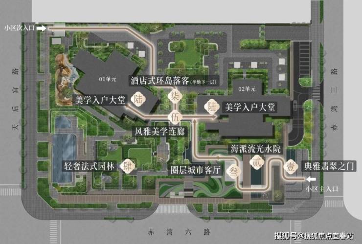入口是范思哲石材点缀的翡翠之门,步入后遇见中式海派流光水院,穿过圈层城市会客厅,可直达风雅美学连廊、轻奢法式园林与美学入户大堂。景色随空间而转换,移步异景,令人流连忘返。