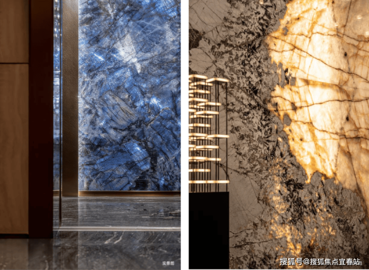 精选全球奢石:公区甄选巴西海浪石、马达加斯加蓝翡翠、潘多拉透光石及整幅伊朗青玉等全球珍稀石材,以天然肌理与艺术拼贴,让每一次驻足皆成与世界的对话。