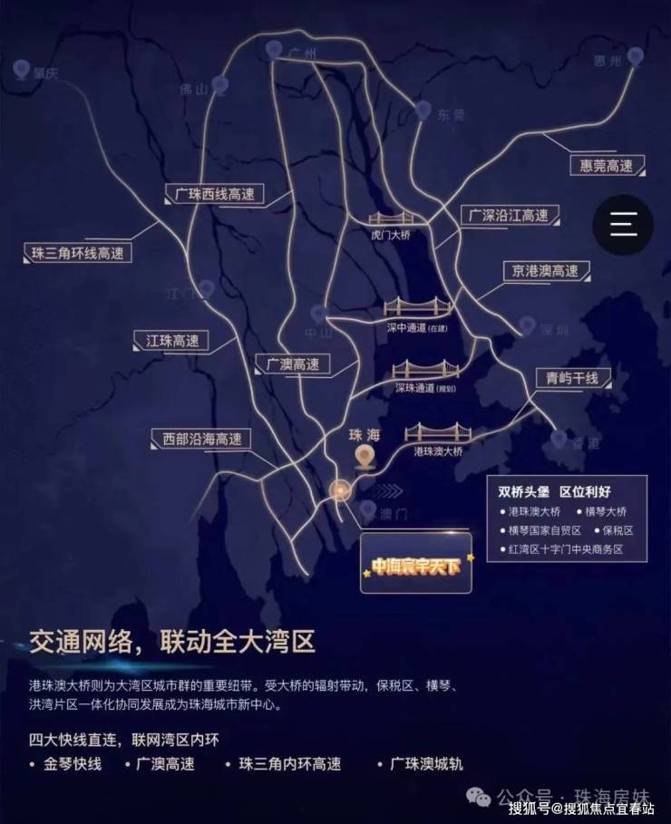 顶配交通网:"一轨双桥三隧道"立体交通,1站澳门、瞬达横琴,风口头排,价值头等舱