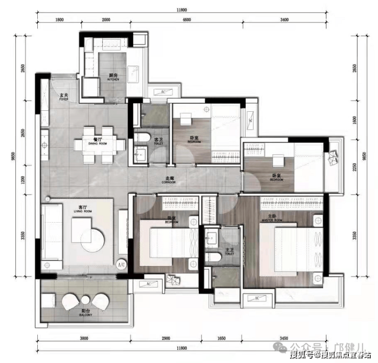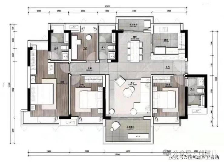 建面约142㎡(4室2厅3卫),总价约220万元起。