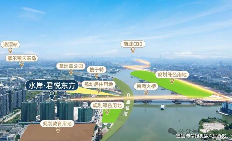 规划140公里的沿江百里碧道就在家门口;水岸·君悦东方临水而建,江面宽度300米,享阚江面超300米一线江景。