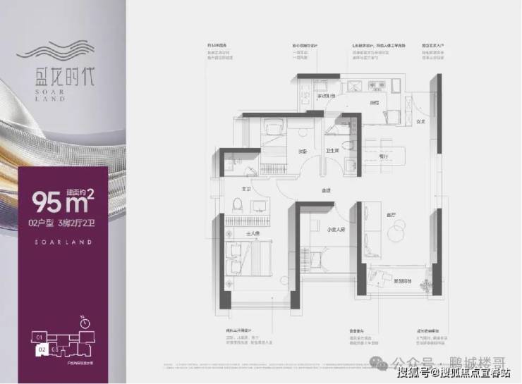 面向二孩家庭 居住品质的建面约95㎡3房2卫