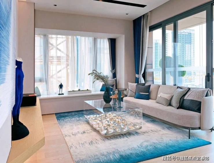 不同层次的蓝色系,与简洁雅隽的线条形成配衬,零落点缀于各处的趣致工艺小品,为空间搭建起精睿高尚的当代艺术视像,为居住人群的生活赋予崭新的定调。
