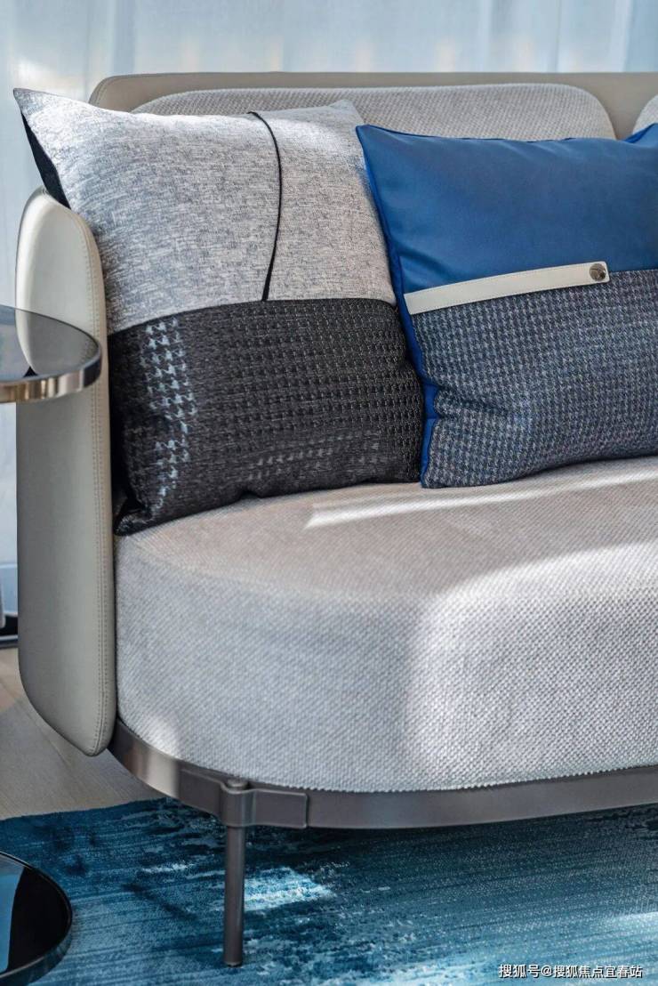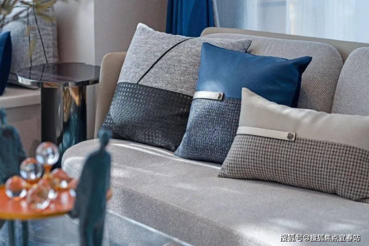 深灰色布面家具,以低调的颜色缩紧体量,留出通道的同时,融入些许岸然春色,与客厅完成对话。