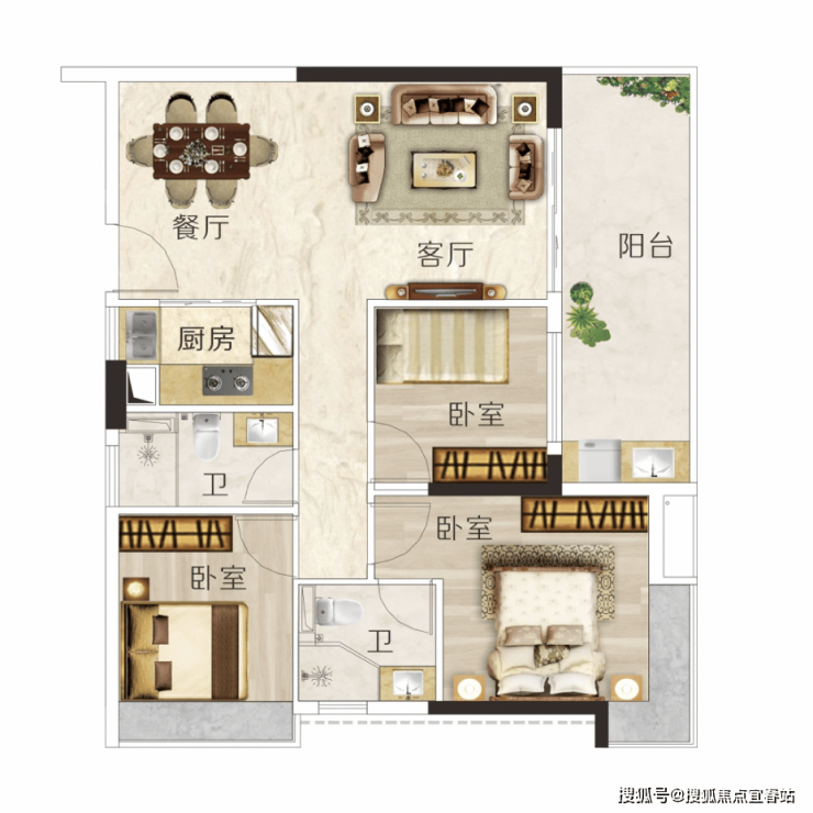◆户型方正实用,动静分区,布局科学