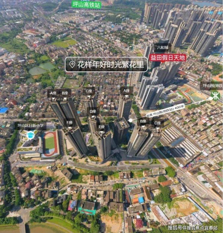 .花样年好时光,作为坪山比较中心的一个楼盘,距离14/16号线地铁坪山围站比较近,只有480米,也是妥妥的地铁口物业。旁边450米还是坪山最大的商业中心益田假日天地,精装修现房,早期2020年开盘均价在4.2万左右,中途还陷入过停工风波导致一直没卖完,好在最终已经交楼了,目前现房在售价格直降到2.5-2.7万/㎡,