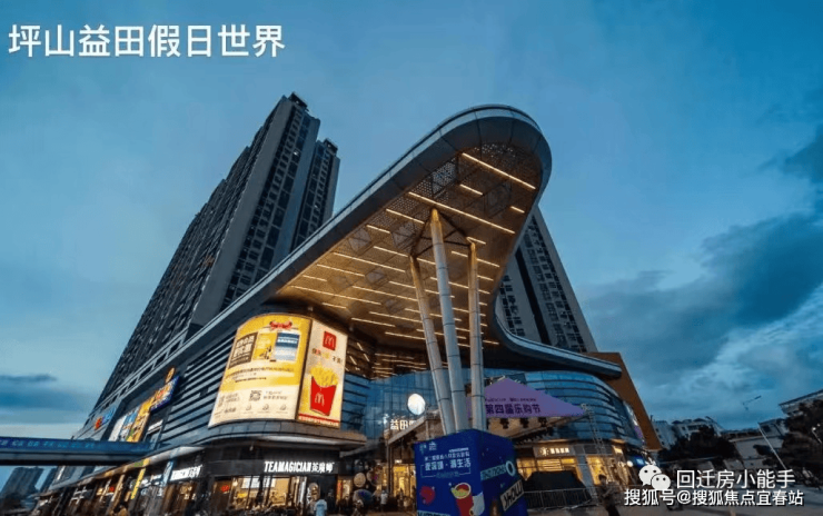 商业方面,约450米有益田假日广场,未来1.5公里处还有佳华沙湖广场8万平商业综合体;周边还有坪山万象城在建
