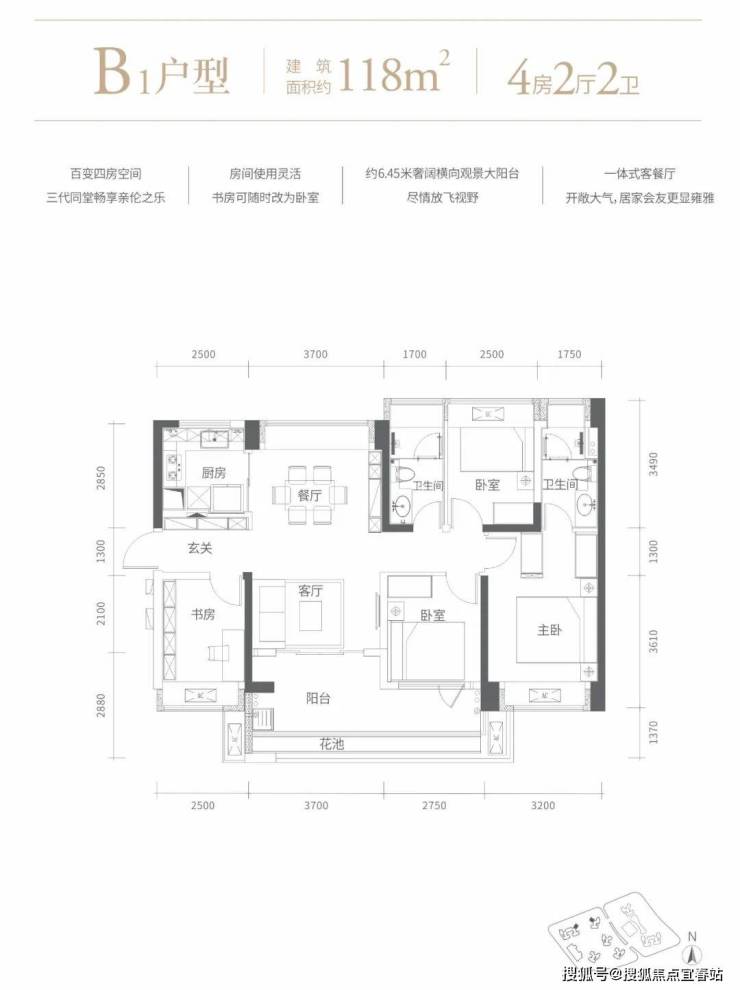 118㎡四房两卫。