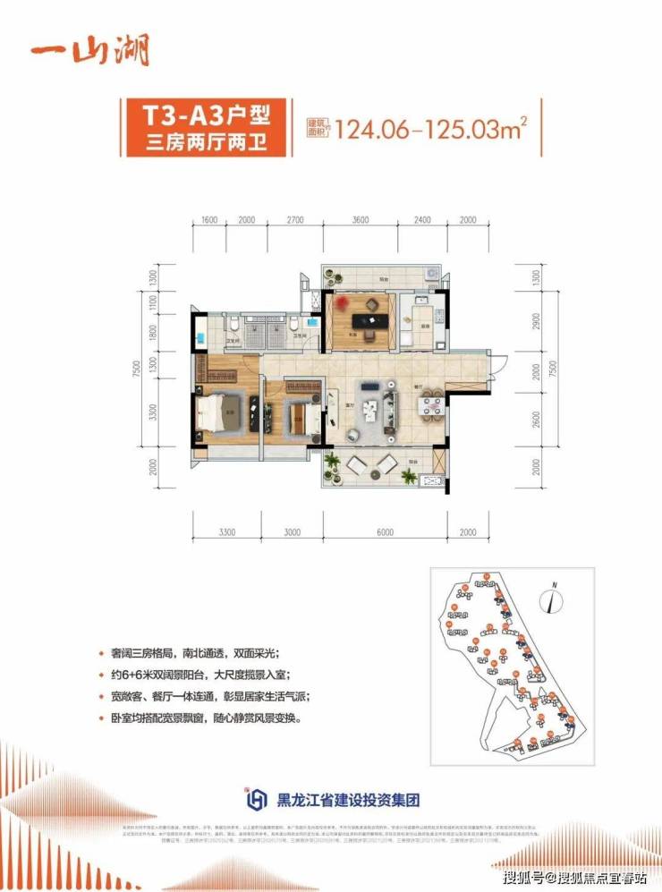 面积:103-125㎡三房两厅两卫