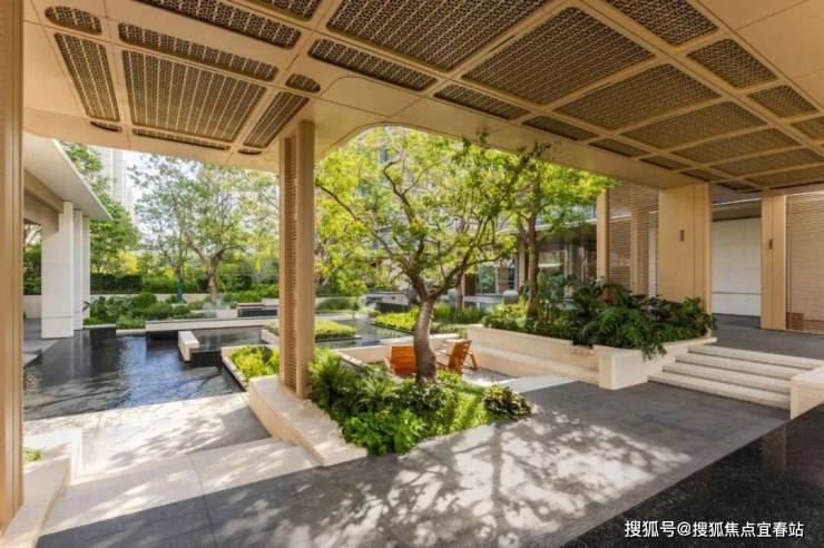 自然,是身心沉浸于在地韵律的疗愈。社区南向入口衔接通海公园,以洄游式设计营造归家礼序;三进式主题景观轴线贯穿始终,步移景异,热带园林与建筑相融共生,演绎自然与人文的和谐对话。