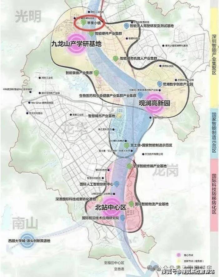 发展优势:龙华区是依靠区位优势,承接市区大量居住消费需求而兴起的,观澜作为隶属龙华区,地处深圳中轴北部边缘的区域,区位并无明显优势,加之过去长时间受通勤工具、时效等条件限制,早年间并没有享受到市区外溢带来的利好,更多是依赖自身传统工业及大量外来务工人员和原住民在支撑区域发展。