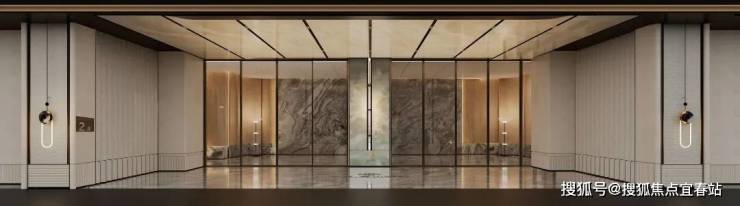 第二重,首层大堂,约9米奢阔挑高,多种石材与贵金属碰撞,石材为原产地拼接,犹如进入了奢石博物馆,有里子,更有面子。