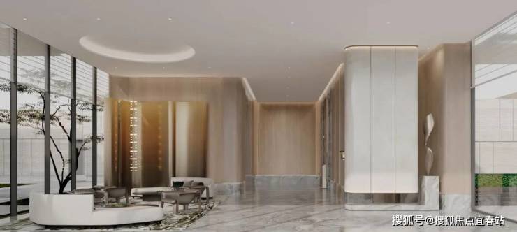 第三重,玻璃无界转换层,北塔7.5米挑高入户大厅,南塔5.5米挑高大厅,通透犹如玻璃盒子的设计,像一个奢侈品展柜,让业主从城市到自然,一键切换度假模式。