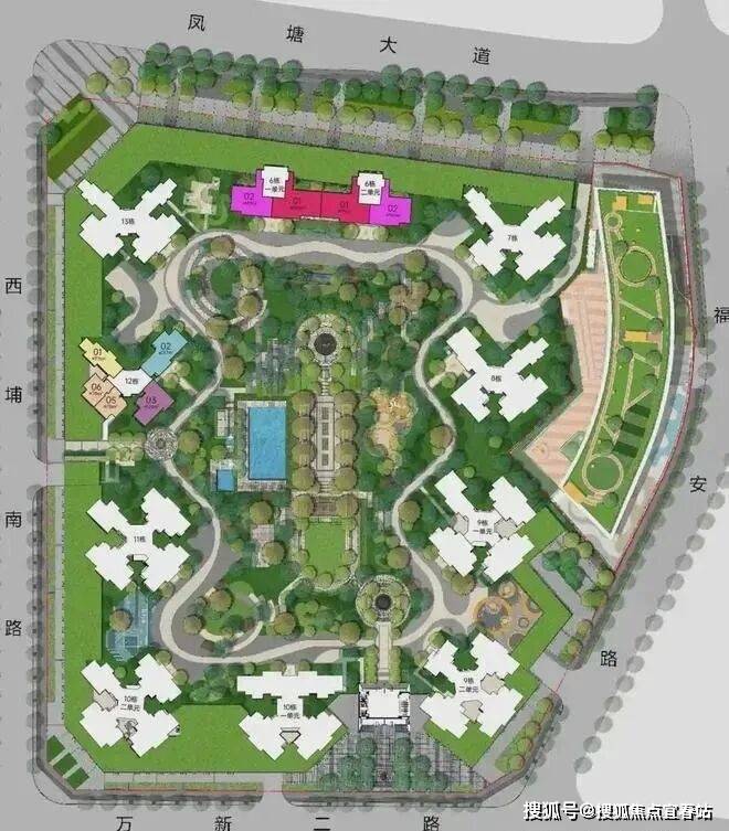 配备全龄子母双泳池、亲子乐园、交流花园,构建全龄活动功能配套,主出入口列阵式礼仪轴线,体现归家仪式感,品质尊崇感。