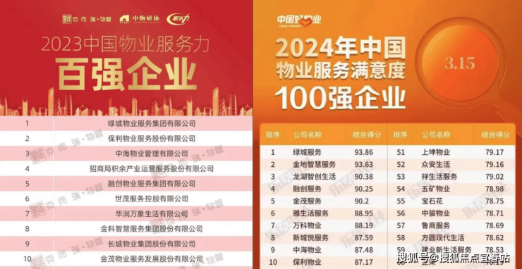 2024年中国物业服务满意度100强企业TOP1(克而瑞)