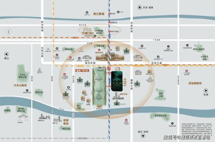 2、番禺广场板块位置在整个番禺属于偏南的位置,偏了一些。