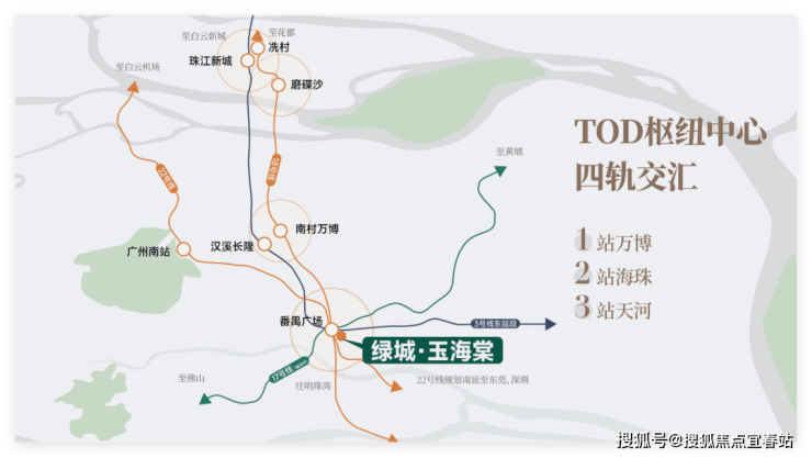2、番禺广场TOD枢纽确定性,3号线、18号线、22号线,轨道交通便捷。