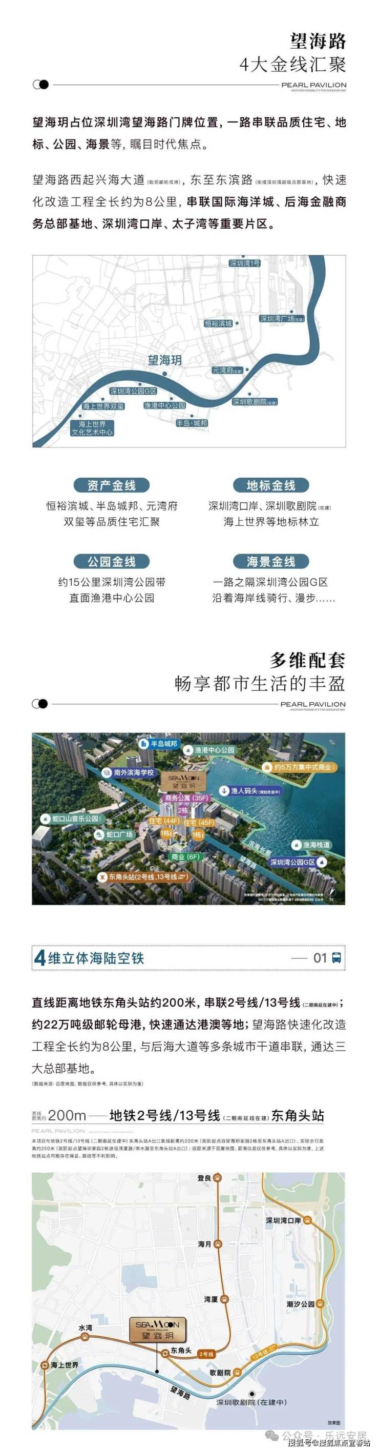 望海玥家园位于蛇口老城区,毗邻半岛城邦、南海玫瑰等豪宅区,享有“二线海景”。南侧老小区部分遮挡海景,少数房源可看海。项目享有蛇口滨海设施,如歌剧院、渔人码头、滨海长廊。
