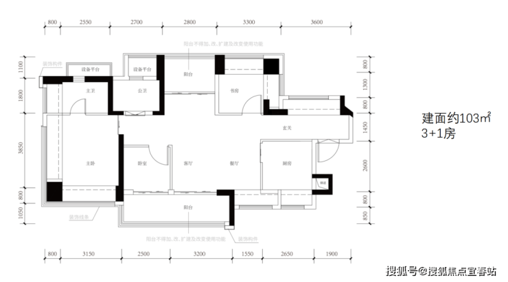 建筑面积约103㎡户型