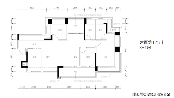 建筑面积约121㎡户型