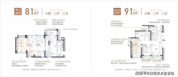 ①精聚焦青年家庭需求,联发精研定制建面约81/91㎡超能三房两卫成长空间,综合使用率高;