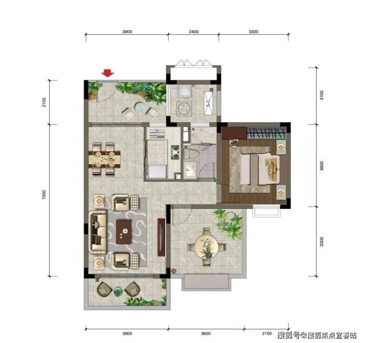 1、J1户型 建筑面积约:72㎡两室两厅一卫