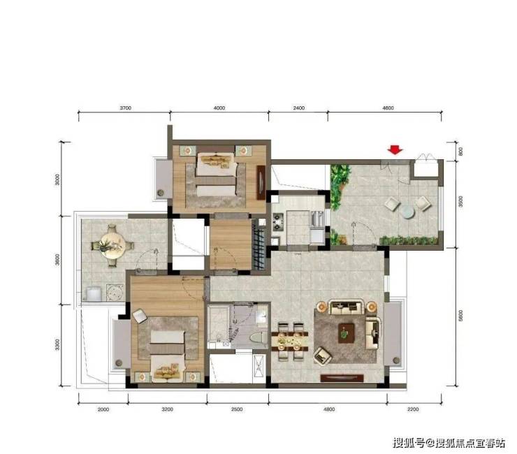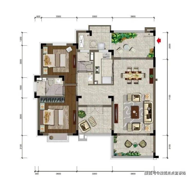 🌷J4户型 建筑面积约:95㎡ 两室两厅两卫
