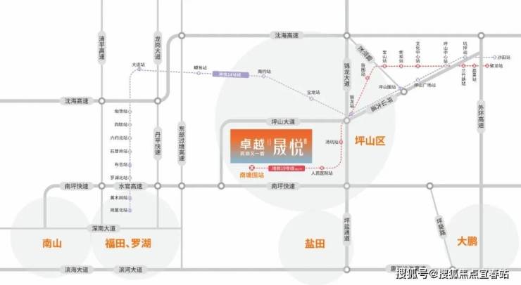 项目靠近多条城市主干道和地铁线路,通过南坪快速、坪山大道、东部过境快速、坪盐通道等道路,能快速到达深圳其它片区。另外,深圳地铁14号线的开通,碧岭片区也迎来“地铁时代”,未来这里还将有地铁19号线(规划中)通车,这条线将穿越碧岭片区,并在卓越深圳又一城·晟悦附近设有南塘围站(规划中),可快速去往龙华、福田、罗湖、南山等地。