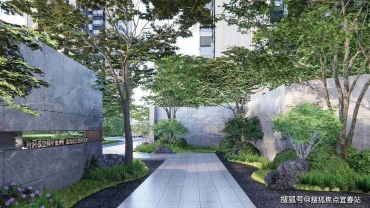 轻奢酒店式落客大门:宽约23米气派门楼,艺术水景与铁冬青乔木