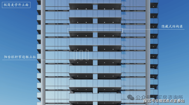 为了提升整个外立面的纯粹,卓越奕式,进一步在细节上也做了很多升级,比如采用了“隐框式开启窗”,这样可以减少窗框对玻璃的切割感,让外立面更加连续一致,更加大气。