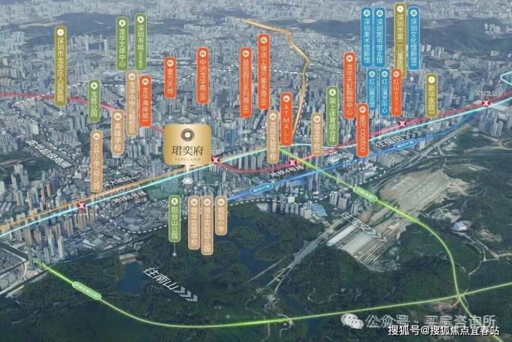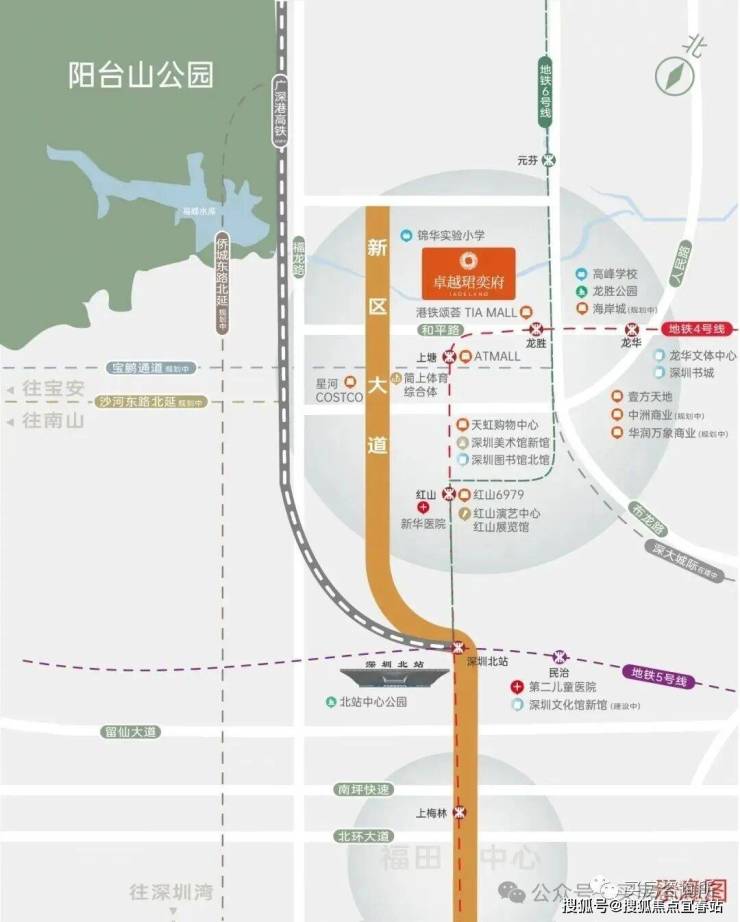 除项目自身外,周边配套也是非常的完善。卓越珺奕府项目南侧为港铁天颂和深铁珑境,北侧及东侧均被城中村包围,居住环境一般,西侧望向阳台山森林公园,未来项目高层或可欣赏自然山景。
