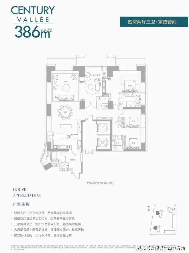 前两次都是公寓,现在住宅首发!还是定位相当高端的纯大平层而且还是无敌景观视野,8梯3户,233㎡/280㎡配备两个独立电梯,386㎡双梯设计,实在任性!