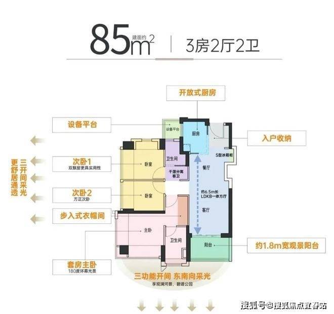 【户型面积】约75-85㎡3房2卫,约94-105㎡4房2卫