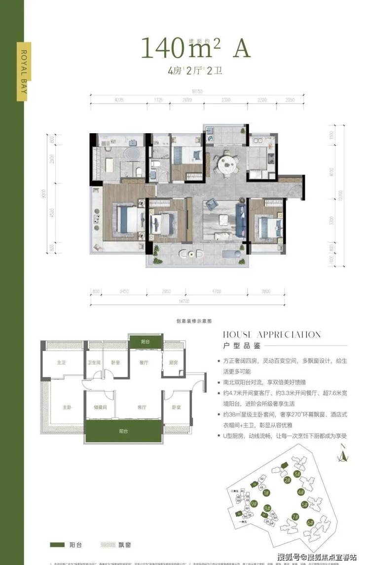 户型亮点:约 38 ㎡星级主卧套间,奢享 270°环幕飘窗、酒店式衣帽间+主卫