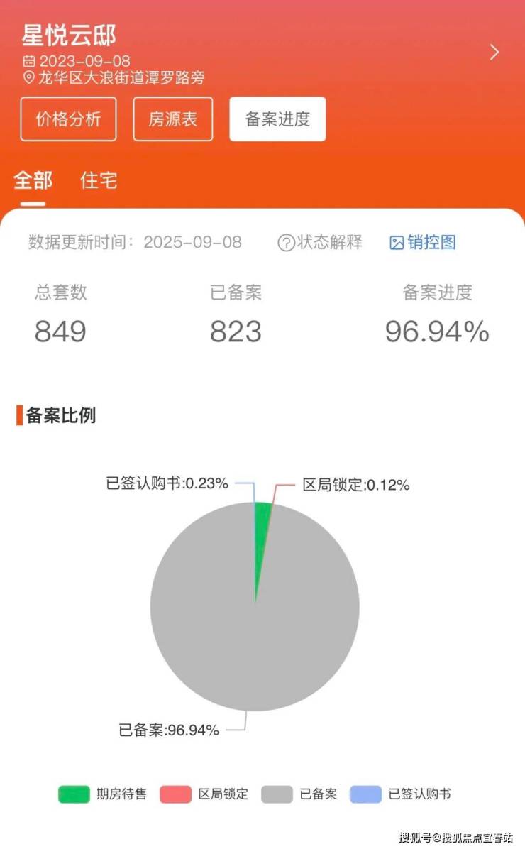 该项目的热度一直不减,周末基本都是售楼处坐满,目前开盘近两年时间了,终于快清盘了,备案了96.94%+0.23%的认购去化97%以上了,项目在今年年底就会交付,另外一个地块星悦名庭现在也拿证入市了