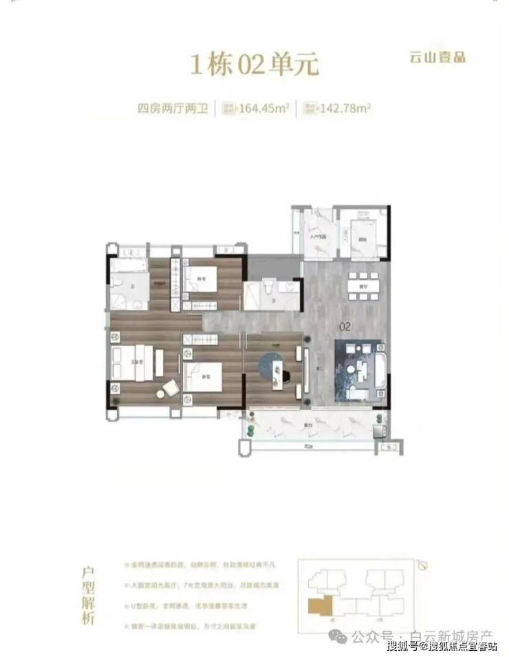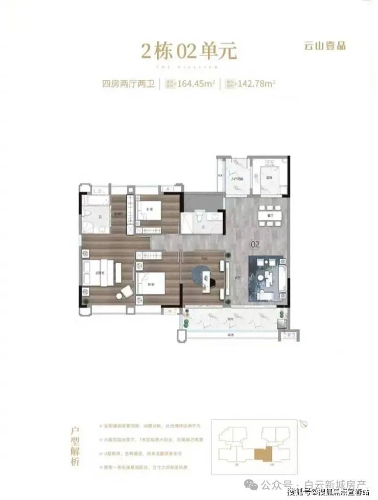 2. 164㎡ 四房二卫户型