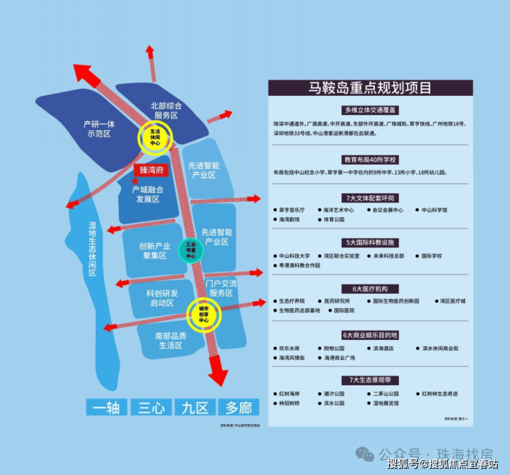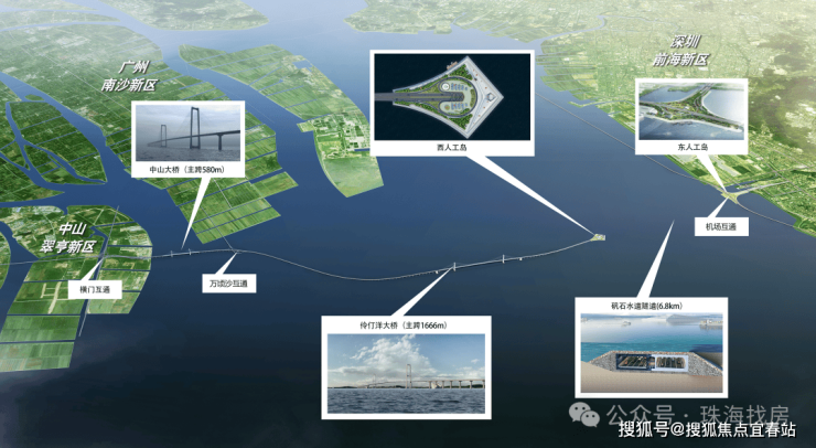 马鞍岛扼守大湾区交通枢纽位置,坐拥“一桥一港双站三轨道四快线”海陆空立体交通路网,深中通道约30分钟迅达前海,区域内还汇聚了广澳高速、中开高速、东部外环高速、广珠城轨、翠亨快线等湾区重大交通设施,更有广州地铁18号线延长线、深圳地铁33号线在此设站联通,完美实现大湾区核芯区域的全面交往互通。