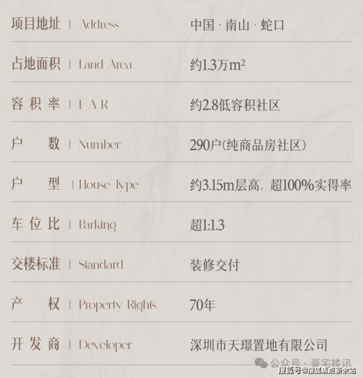 基础信息:楼盘简介、成交均价、备案价、产权年限、物业类型、开发商背景、楼盘详细地址