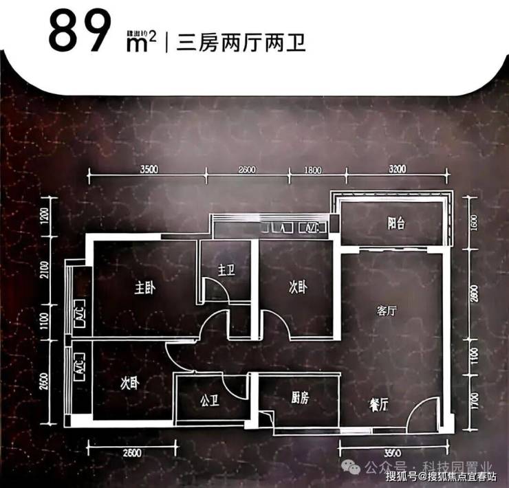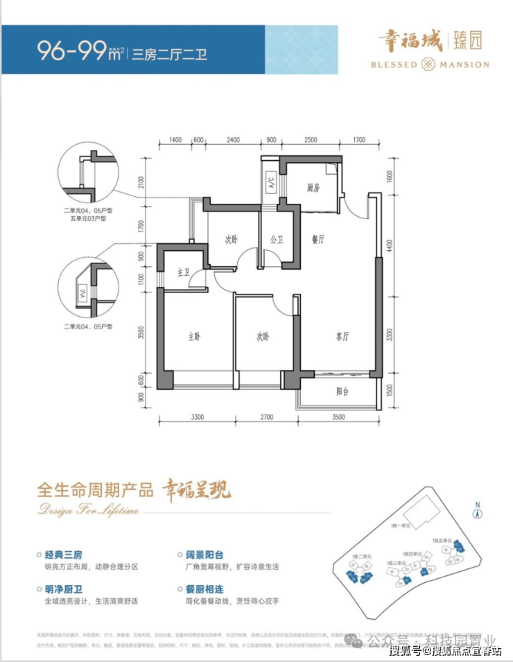 面积:96-99㎡三房两厅一卫