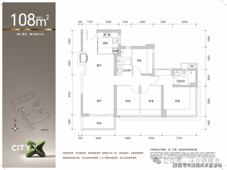 南北通透双厅设计,户型方正百变空间;双卫设计宜居便利,主卧270°宽景采光