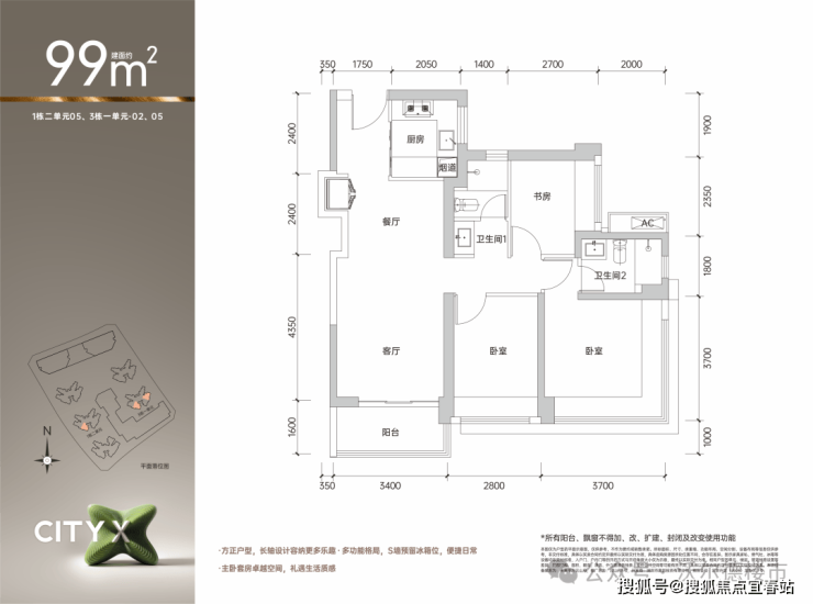 王炸户型 约89㎡3+1房两厅两卫(双娃家庭置业首选)