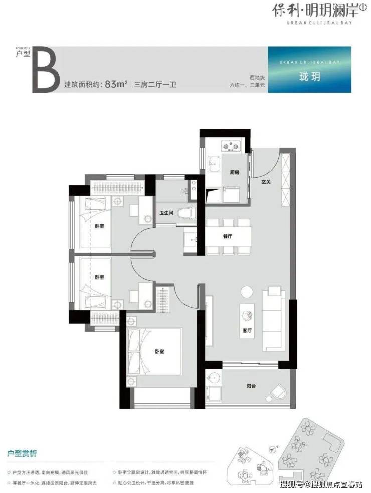 79-83㎡的3房2厅2卫,折后总价约185万,单价2.22万/㎡。