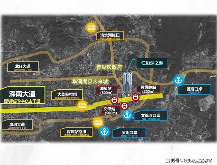 占位:国家级区位 深港融合C位0世界四大湾区之一粤港澳大湾区领头羊.国家战略赋能:2香港北部都会区将全域对接罗湖,项目距离文锦渡口岸仅800米,深港融合第一触点